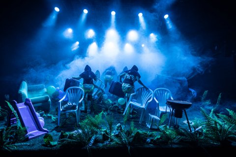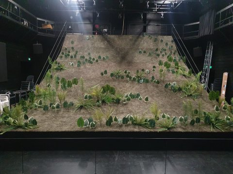 I forestillingen Forplantning, Teater Svalegangen. var hele rampen bygget op af lejede byggematerialer, som kom fra scenografien til Romeo & Julie, Teatret Møllen.